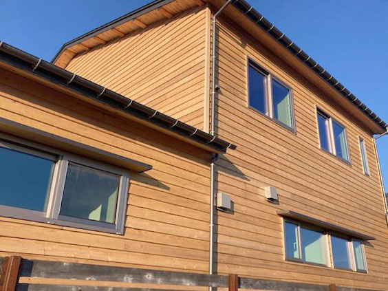 三条市に杉板外壁の二世帯住宅が完成しました。