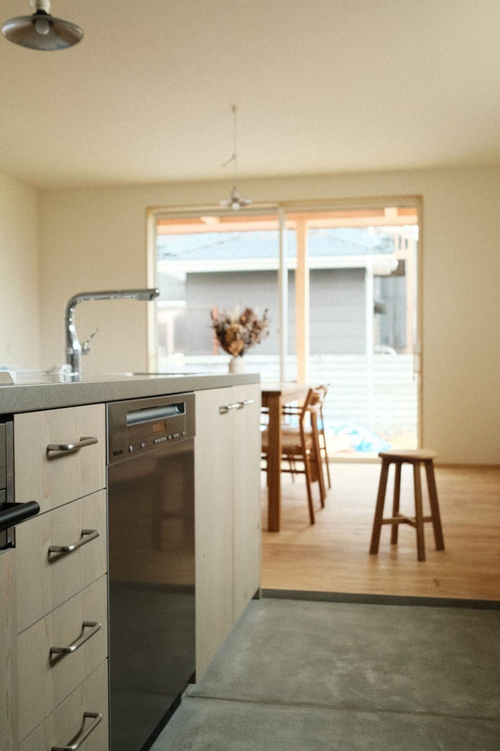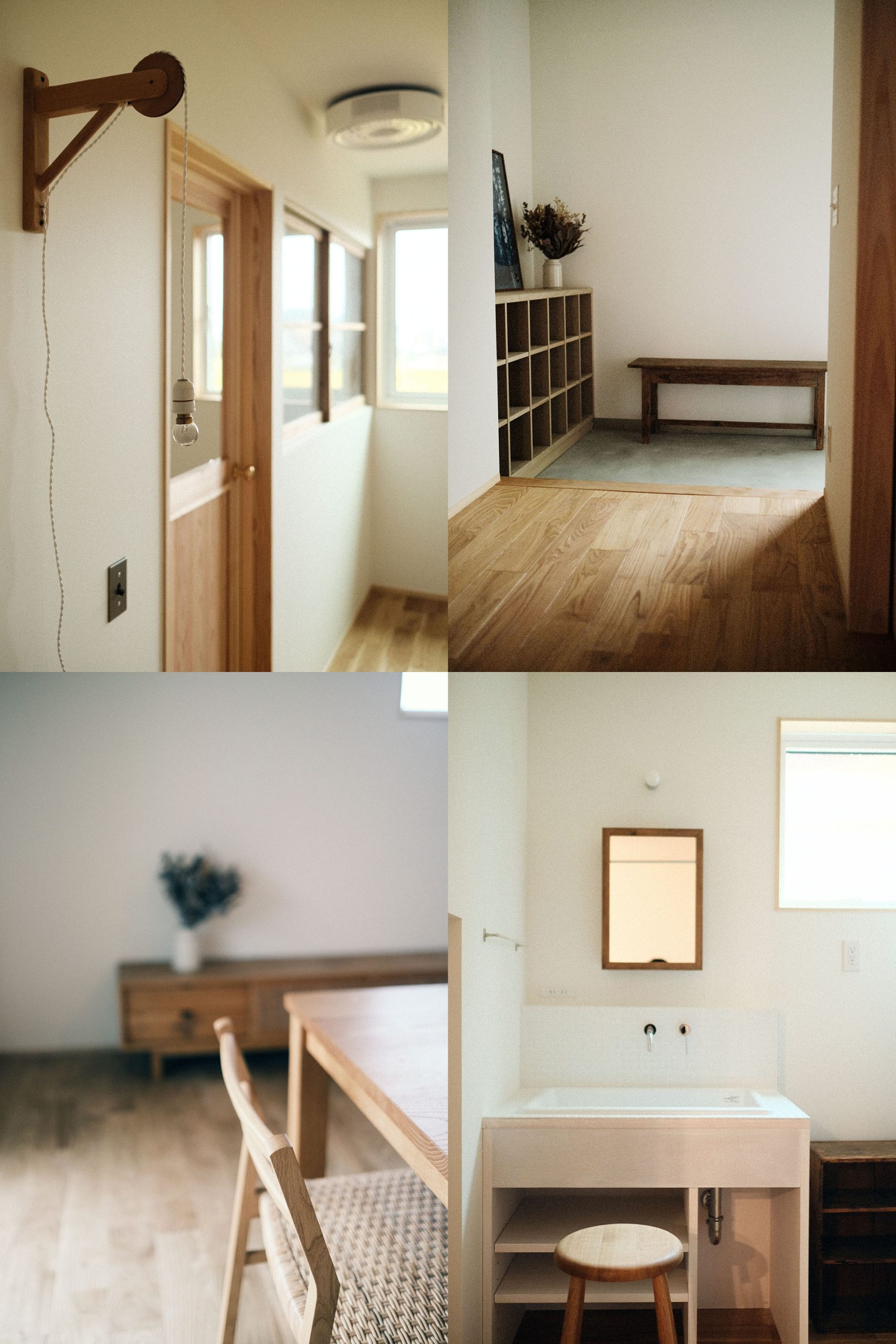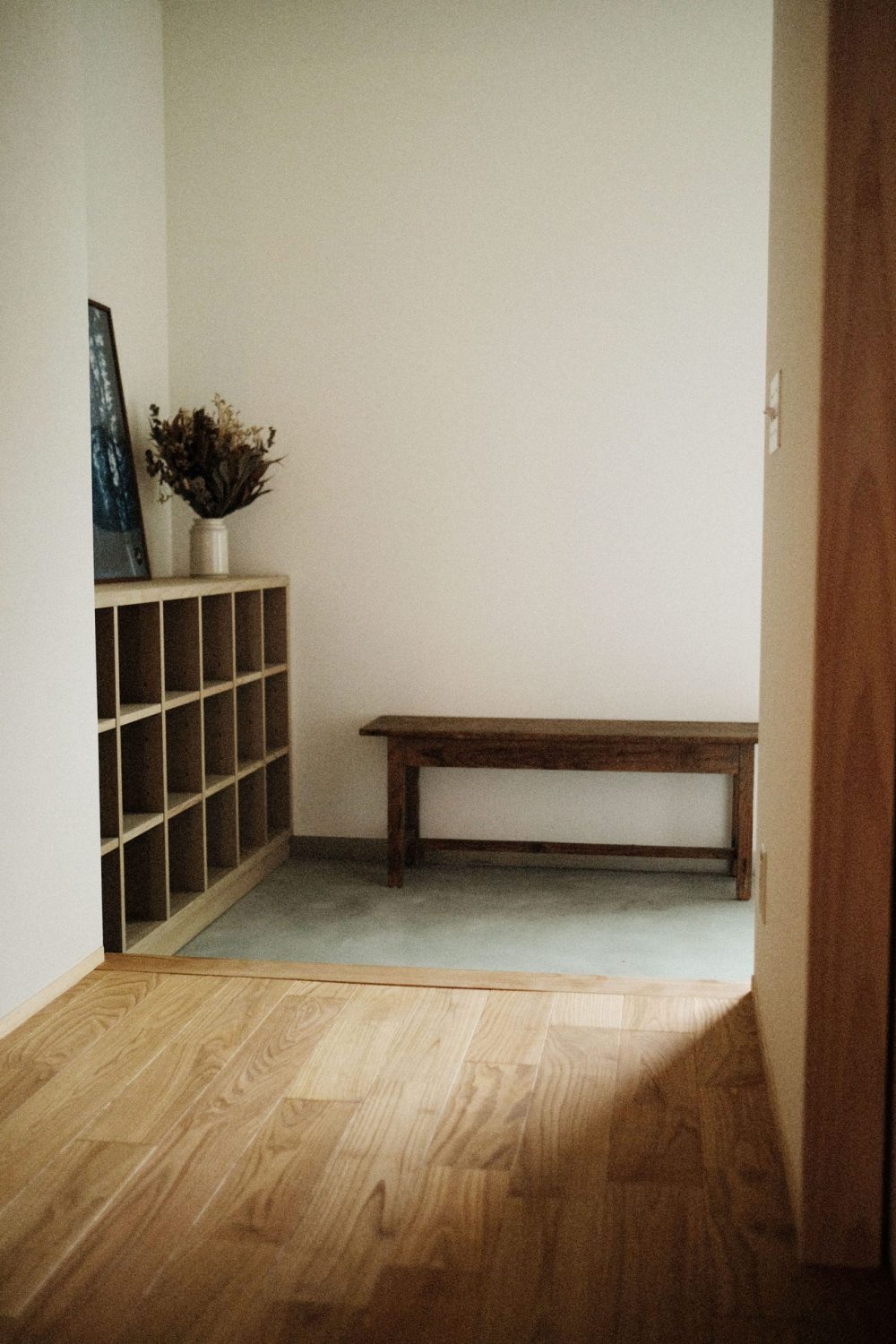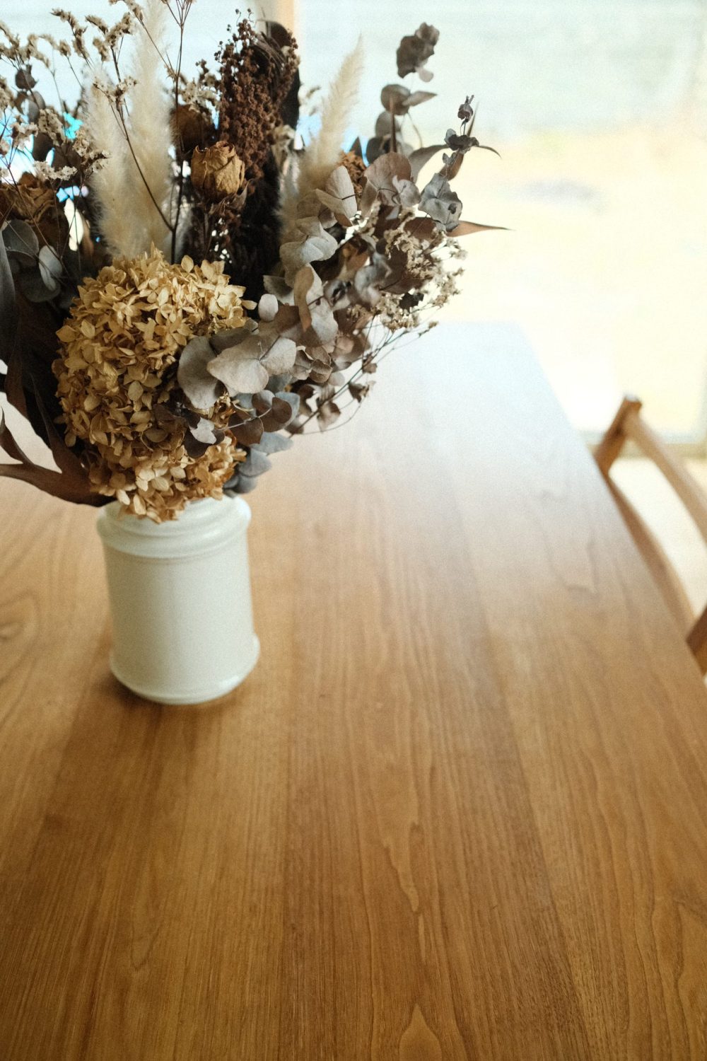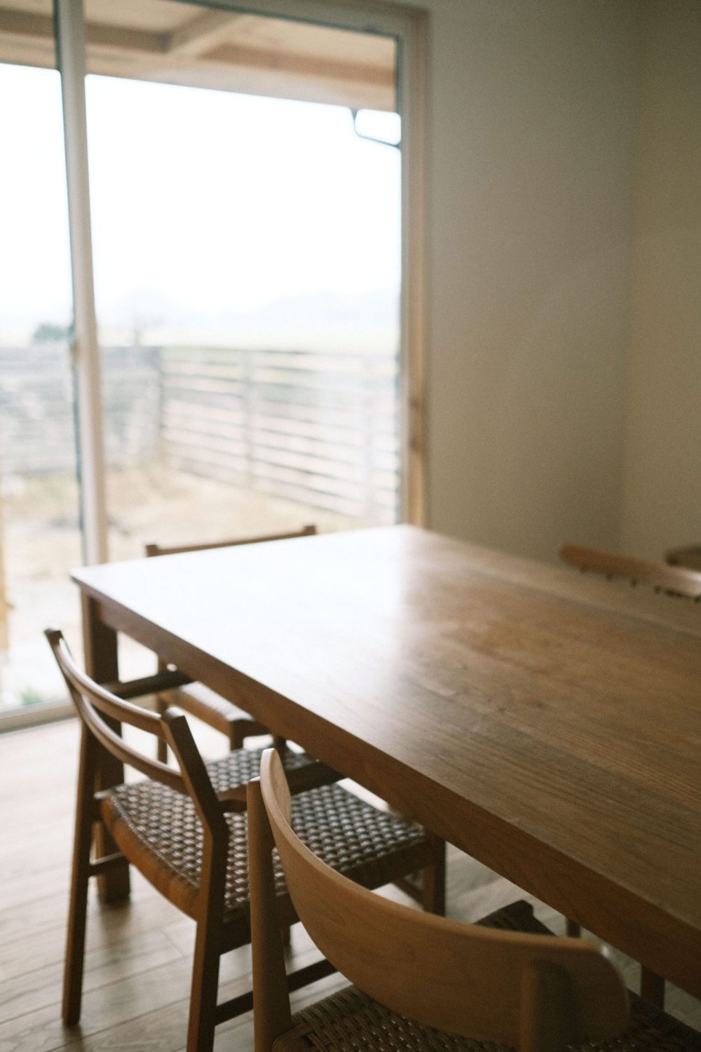 施主ご夫婦は、新築の家に古い家具や小物をコーディネイトされている他、以前から無垢材オーダー家具nine(長岡)さんのダイニングテーブルを愛用されています。